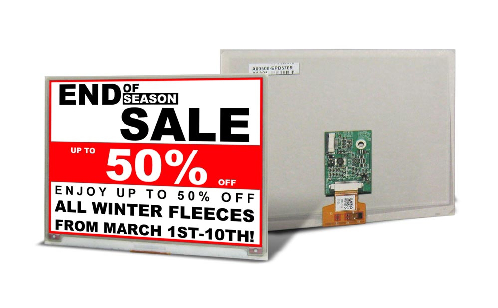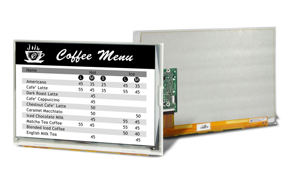 高い視認性を誇り、低消費電力の電子ペーパー。2~31.2インチと幅広いサイズでご活用いただける電子ペーパーをご提供しております。3色表示可能な商品もございます。